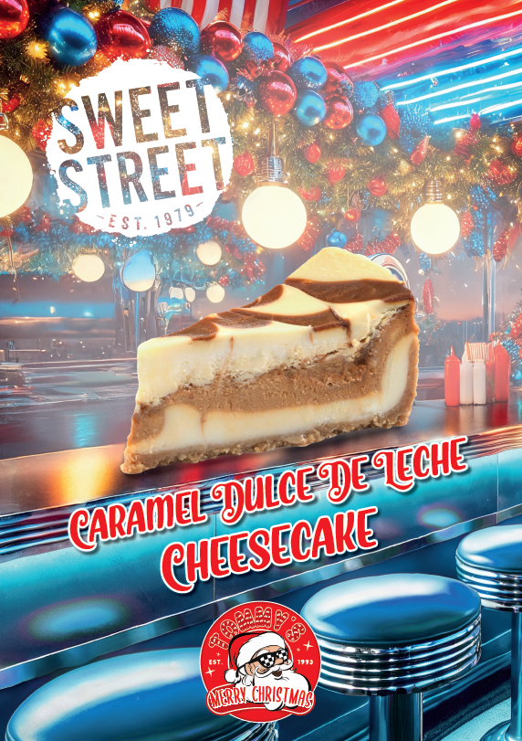 Un tango de saveurs alléchantes  proposées par la maison Sweet Street, notre pâtissier américain de Reading en Pennsylvanie. Fromage infusé au caramel de dulce de leche entrelacé de petits morceaux de dulce fondants et d’un marbré moelleux. Le tout dans un cheesecake crémeux au chocolat blanc.